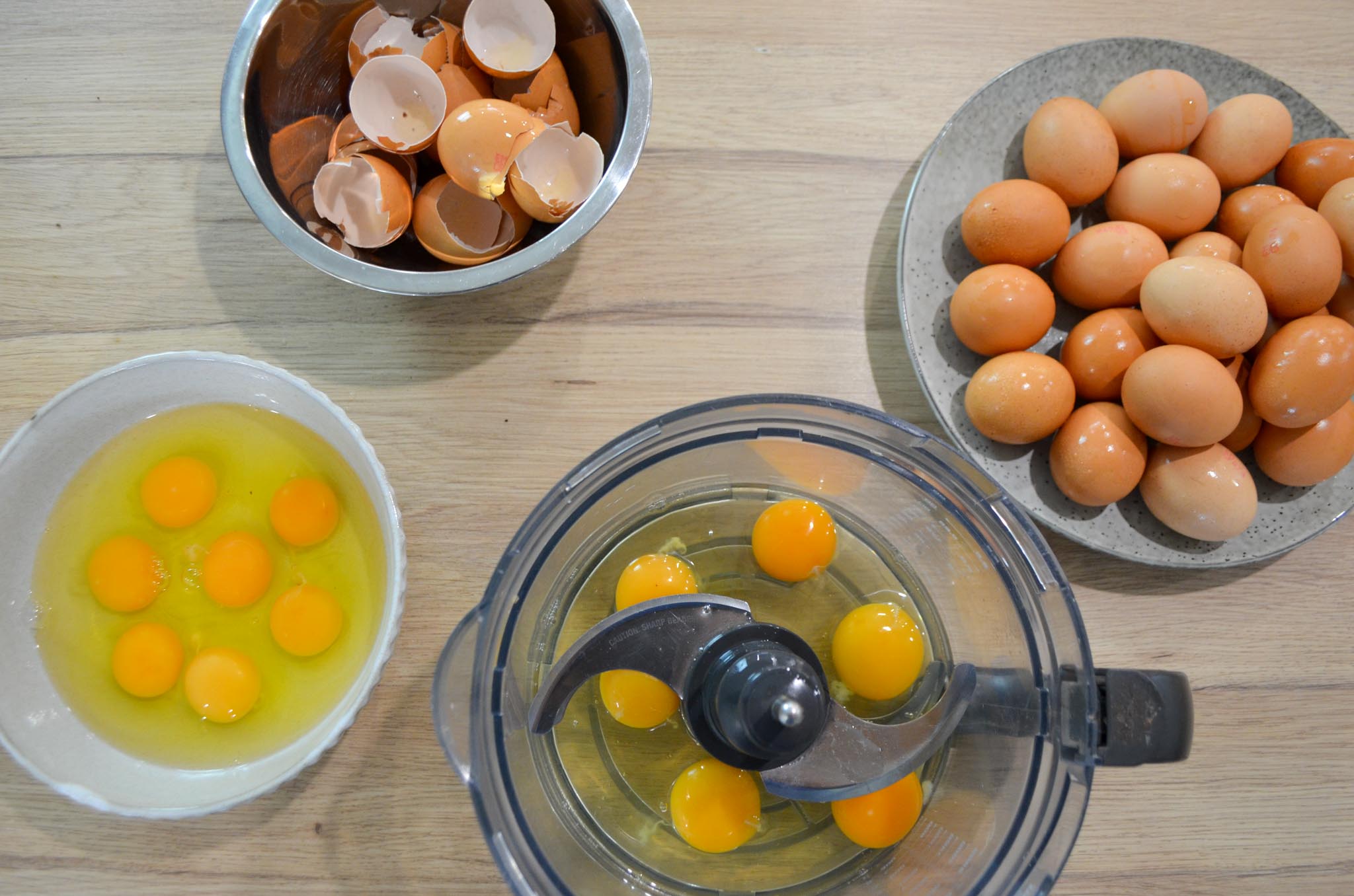 1. Crack each egg into a separate bowl before adding to the blender/food processor or large mixing bowl to prevent a spoiled egg contaminating the whole batch
