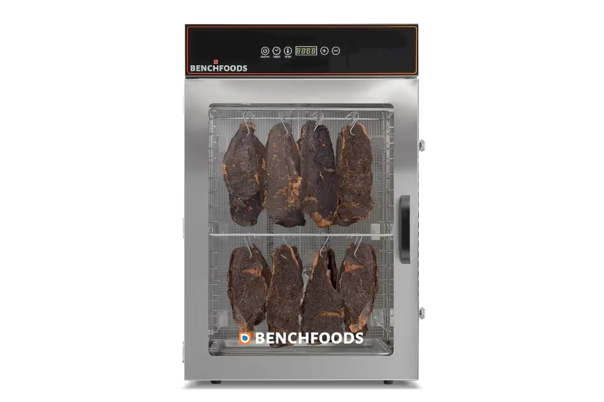 Our unique Programmable Logic Controllers (PLC) enable you to conduct staged drying cycles according to a predetermined recipe. With up to five customizable steps, each with its own programmable temperature and time settings, you can achieve precise and consistent results every time. This feature is particularly useful for “kill-step” processes when making beef jerky and for reducing dry times by starting the cycle with a higher temperature and then gradually decreasing as your product loses its moisture. With this method, you’ll achieve the same product consistency, texture, and appearance in less time without sacrificing quality.