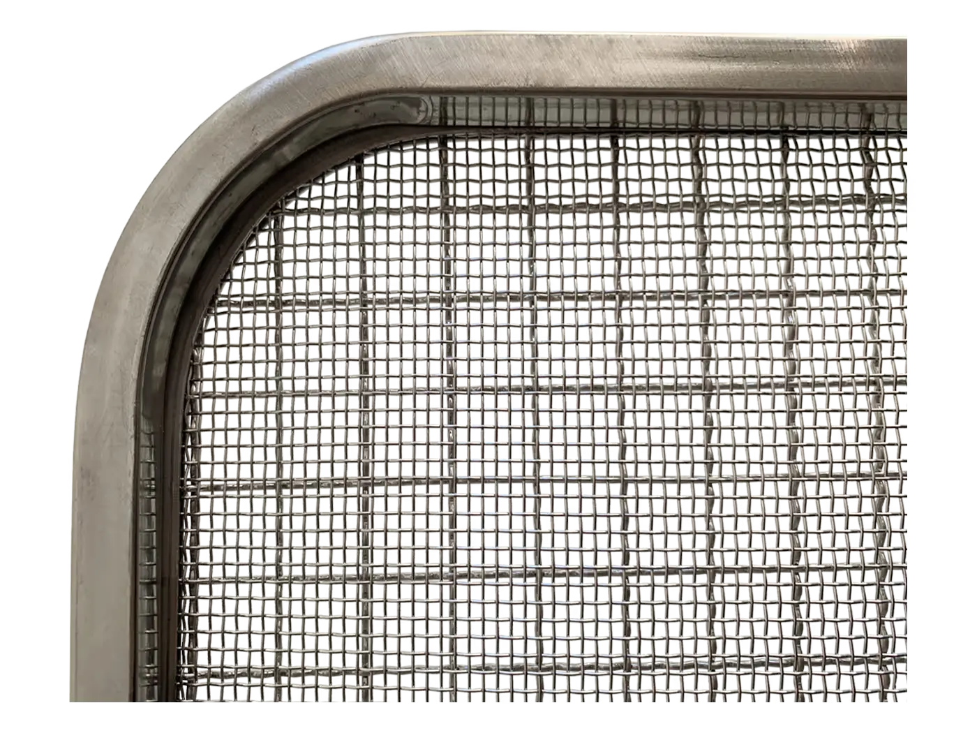 46 x 64 cm stainless steel industrial fine mesh dehydrator tray with rounded corners and raised rim